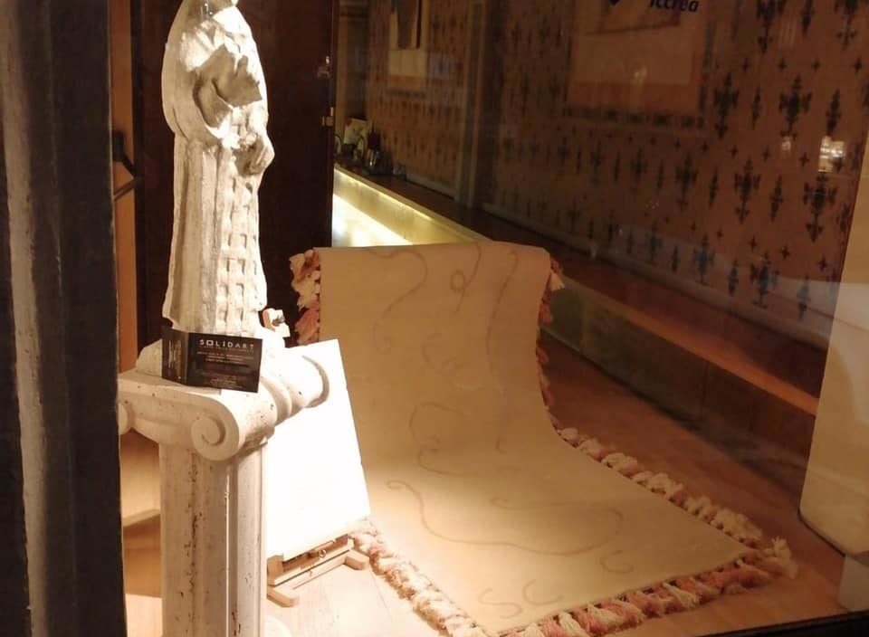 Il prezioso tappeto "Recherche" in lana e seta di Susanna Cati è in questi giorni esposto presso la meravigliosa e antica sede della BCC Umbria