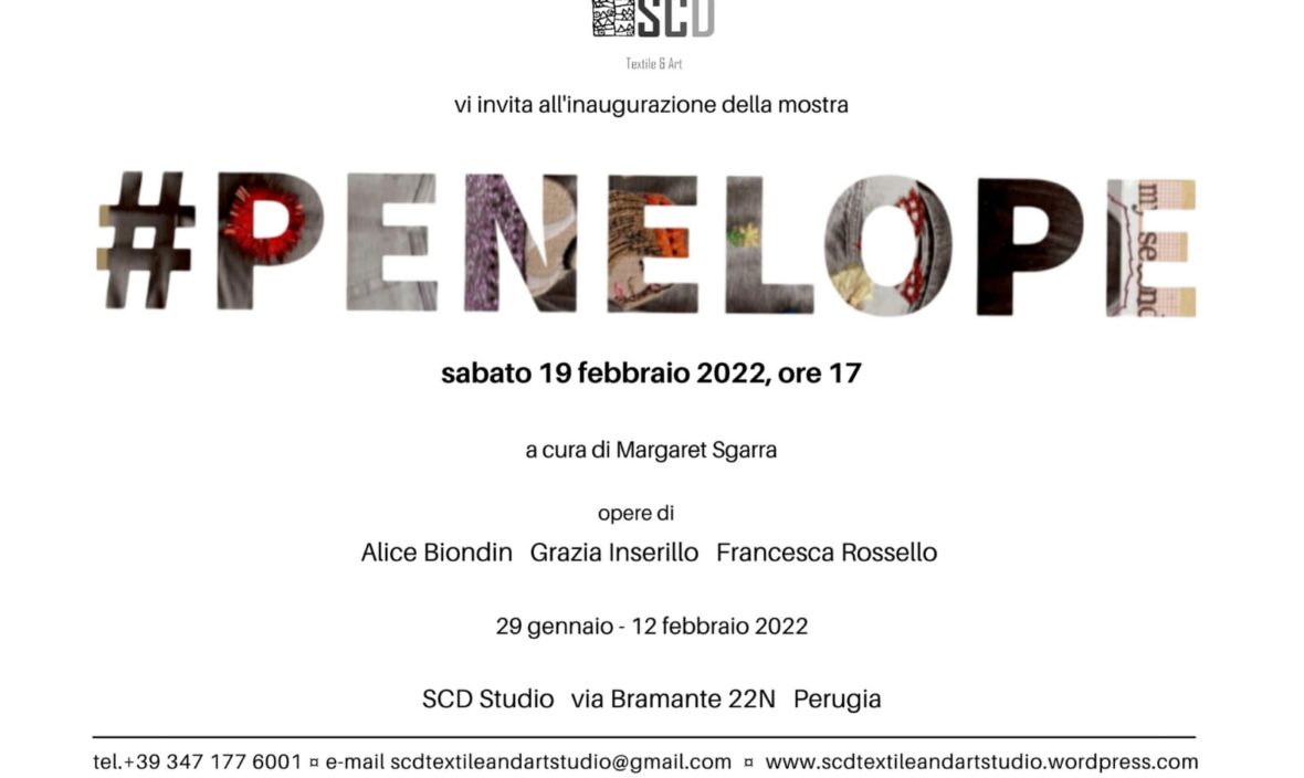 Inaugura sabato 19 febbraio 2022, presso SCD Studio di Perugia, la mostra #PENELOPE, curata da Margaret Sgarra, con opere di Alice Biondin, Grazia Inserillo e