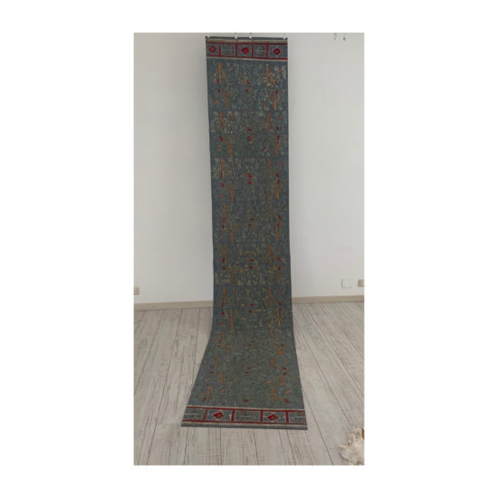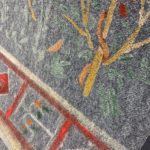 L’opera tessile di SUSANNA CATI è LA CASA DEL FRUTTETO, un tappeto in feltro dipinto a mano con acrilici e pigmenti naturali lungo 4 metri e largo 76 centimetri.