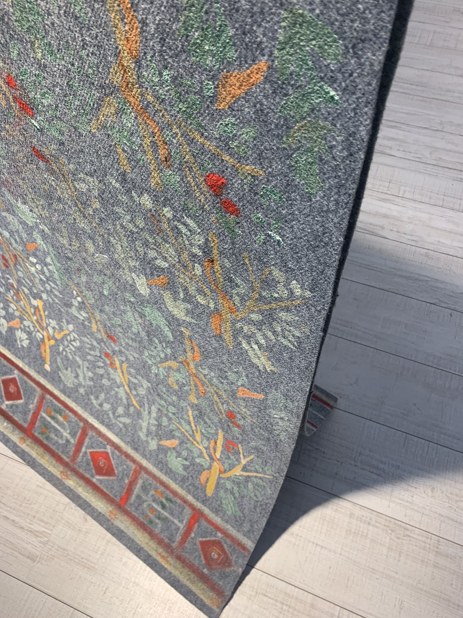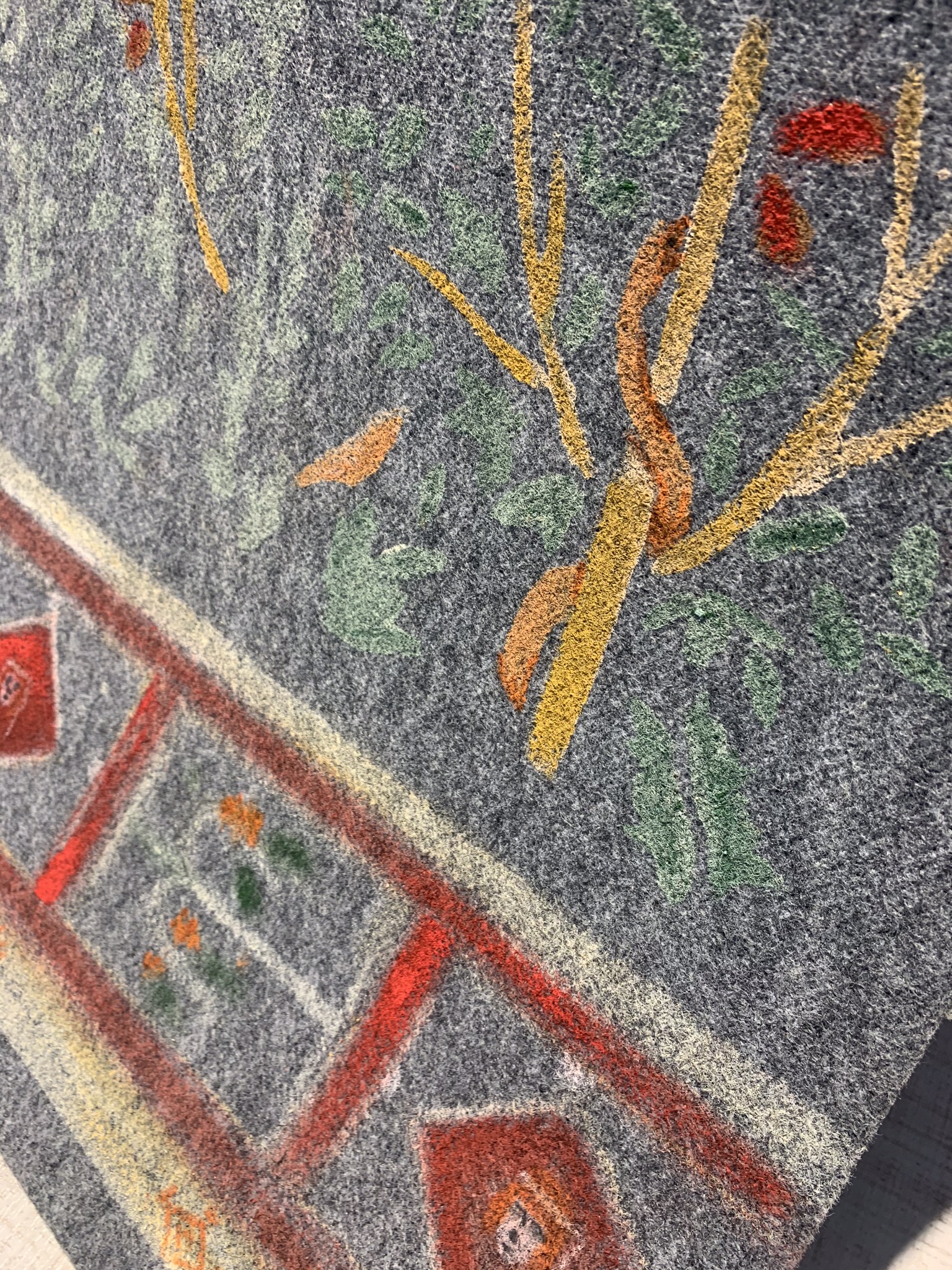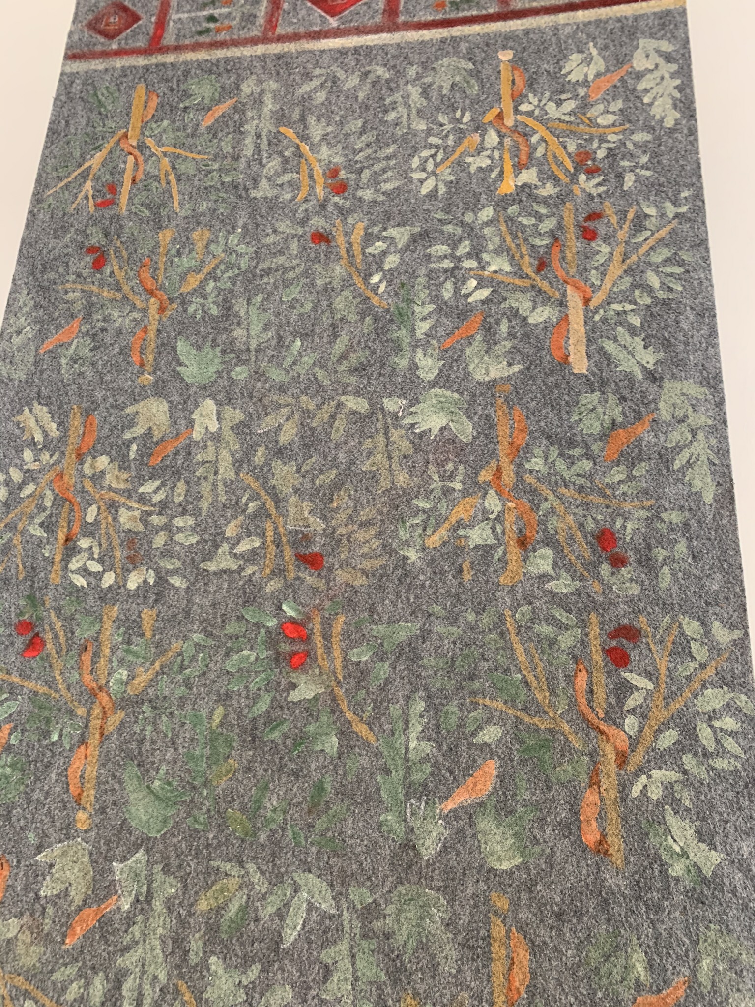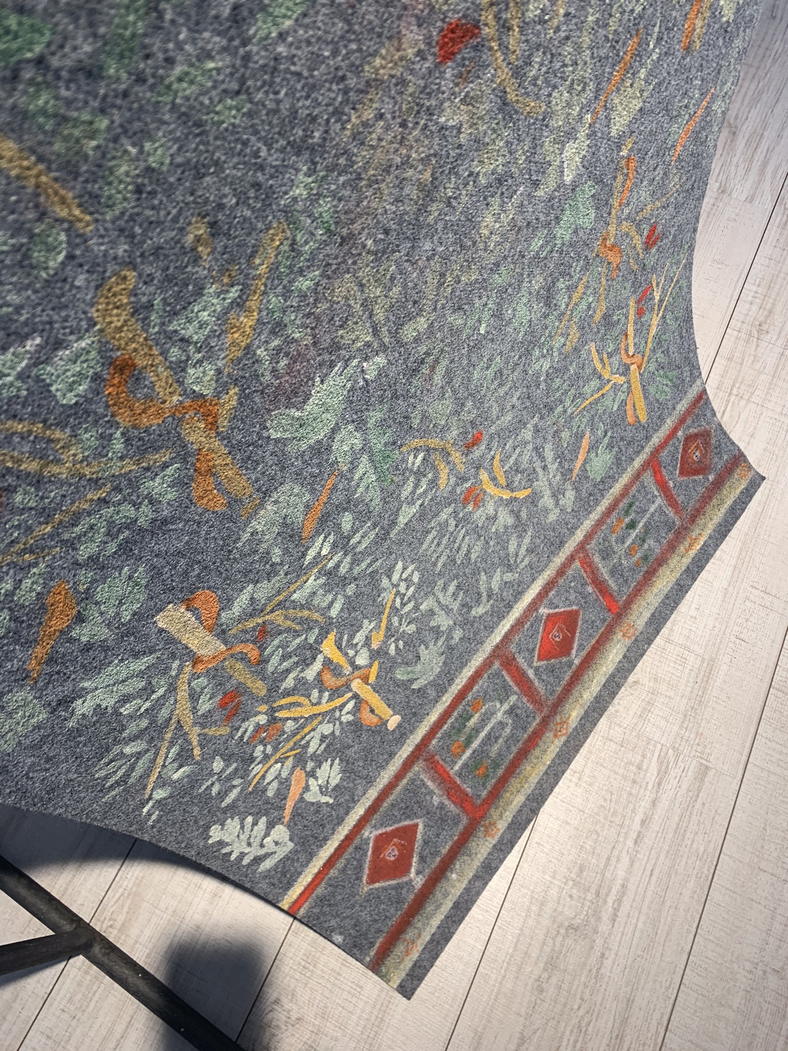 a hand-painted carpet with acrylic and natural pigments,4 meters long and 76 cm wide