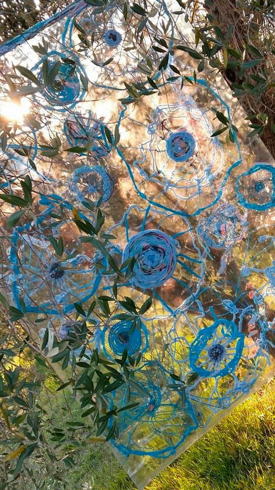 • Materiale: filati diversi lavorati a papier machè inseriti in una superficie in pvc