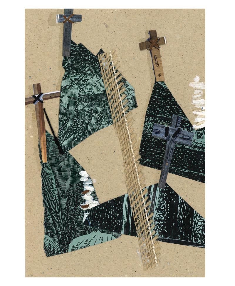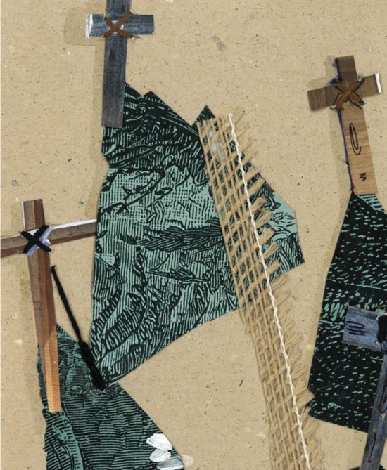 • Tecnica: collage di tessuti, corde, colori a china, acrilico, ricamo