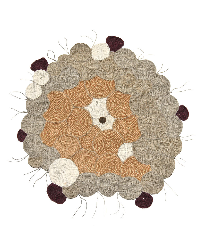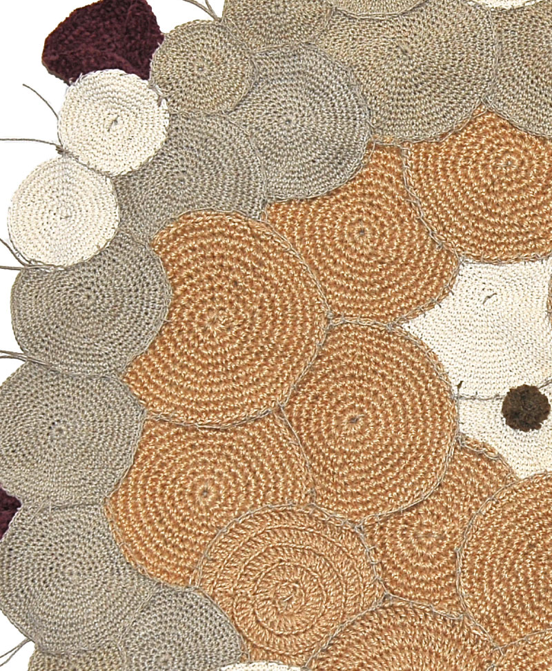 Crochet working composed of micro elements in the colors of the earth.