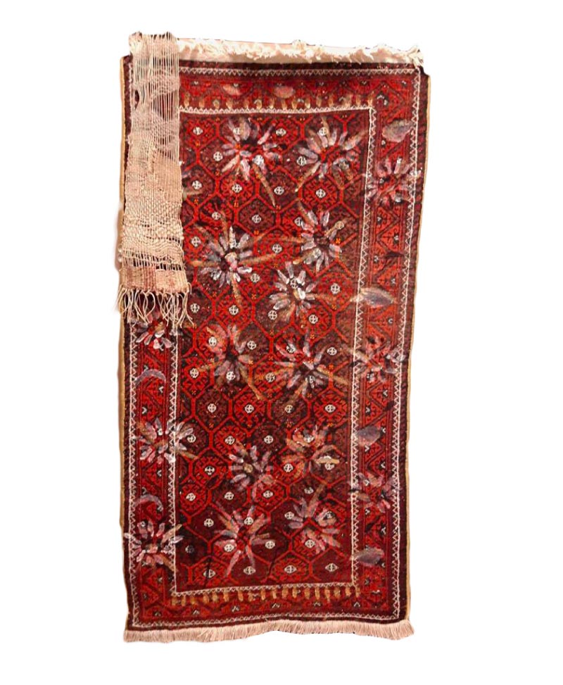 - Material: Persian Baluch of old manufacture on which the artist has intervened with mixed technique