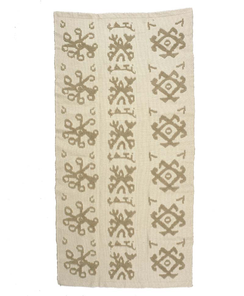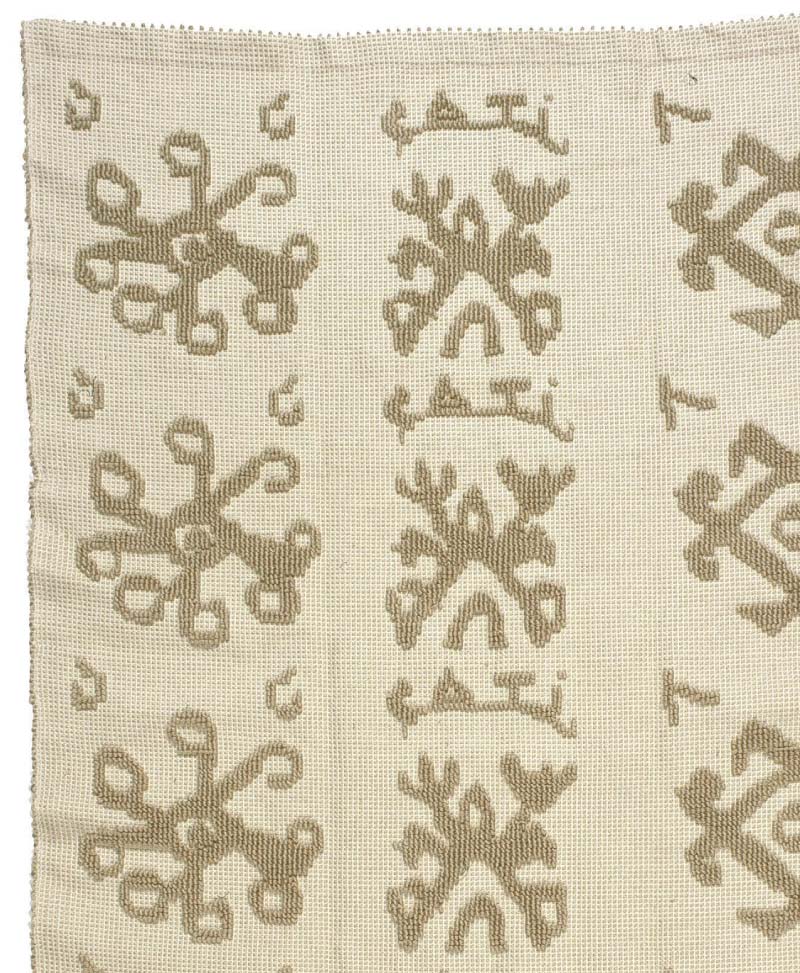 Nodo pibionis tessuto dalla Cooperativa Tessile Artigiana Sumarmuri su disegno dell’autrice (nota la firma dell’artista sul tappeto).