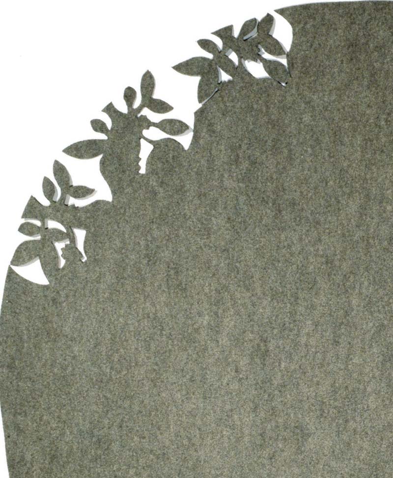 • “… I tappeti di Susanna Cati, i ritagli grafici non sono mai identici, realizzati a mano con una tavolozza di colori rubata alla natura … Manufatti straordinari dal forte tocco contemporaneo, da appoggiare a terra ma anche da appendere muro, perché hanno la stessa forza decorativa di un antico arazzo … “. (Barbara Malipiero di ELLEDECOR n ° 134)Tappeto in feltro “Carta poetica”