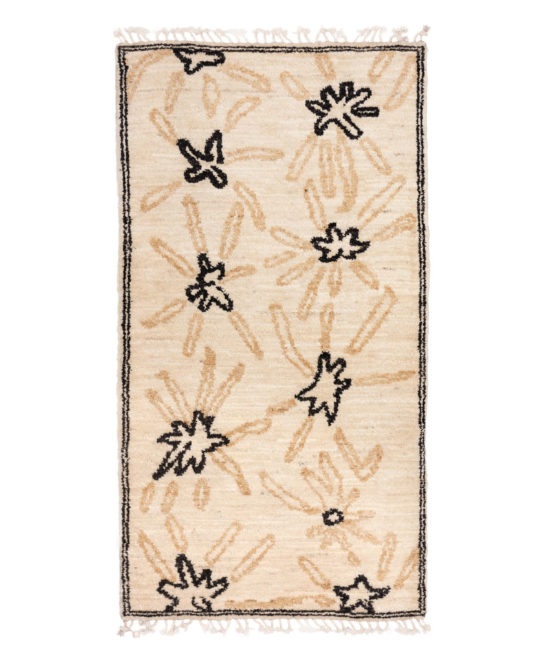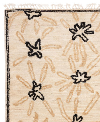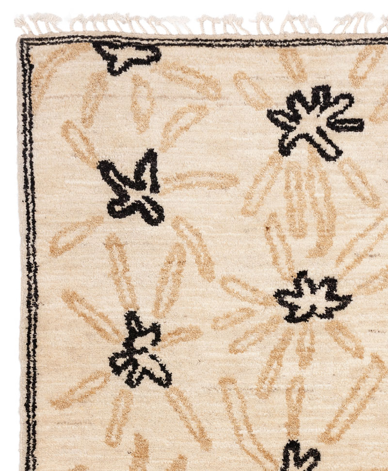 Tappeto dal disegno contemporaneo a tre colori, annodato a mano. Personalizzabile in colori e dimensioni.