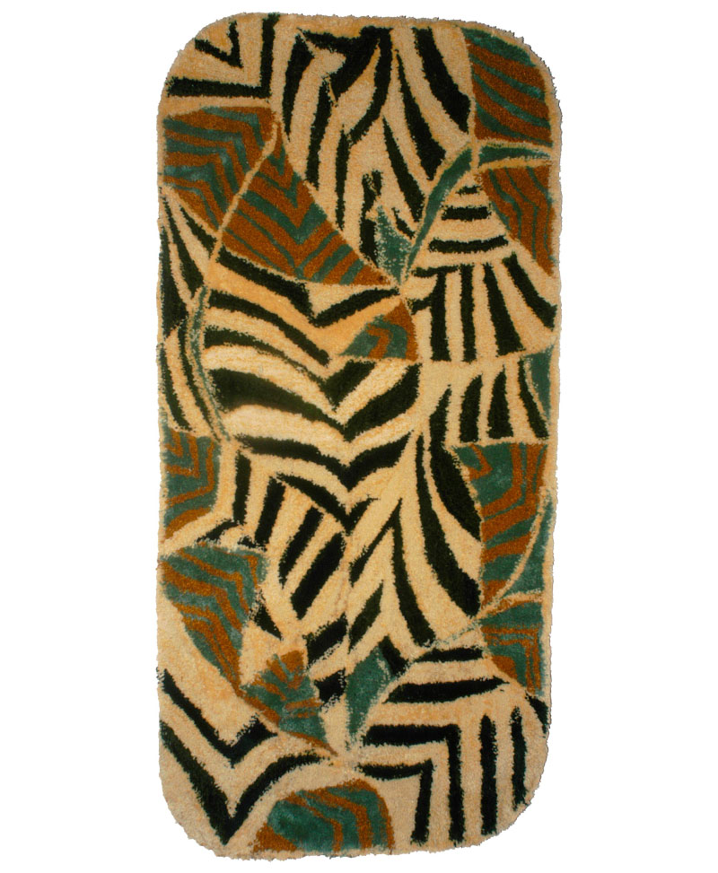 Tappeto disegnato e tuftato a mano dall’autrice appositamente per un ingresso che richiamava i toni del verde.