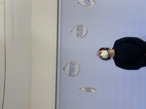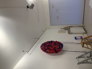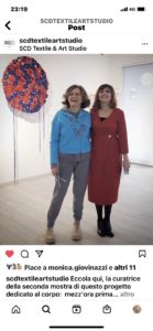 Alice Biondin compie un’indagine sugli inevitabili mutamenti fisici della donna durante il periodo della gravidanza quando il corpo diviene una casa, il grembo accoglie una vita e si adatta ad essa. L’artista amplifica la metamorfosi delle forme fisiche e ne esaspera i tratti. La dimensione corporea ritorna anche nei collages appartenenti alla serie Bleeding days dove la predominanza del rosso simboleggia il ciclo mestruale: una condizione fisica che rappresenta ancora oggi un tabù. Gli arazzi di Grazia Inserillo affrontano il tema dell’identità: attraverso le trame filamentose e i nodi che compongono le opere, l’artista esprime le difficoltà della ricerca del proprio sé indagando, allo stesso tempo, anche il rapporto con la propria terra. Attraverso la scelta di cromatismi violenti la Inserillo dà voce alle sofferenze generate dal distacco generato dalla necessità di abbandonare legami e affetti per tentare di raggiungere migliori condizioni di vita. Francesca Rossello riflette sull’emergenza ambientale attraverso un’opera composta di cinque telai con ricamo su tulle che pone lo sguardo sull’esistenza dei piccoli esseri che popolano la sfera naturale, in questo caso, di una colonia di formiche rendendo visibili le piccole tracce del loro passaggio sul nostro pianeta, stabilendo una connessione tra esseri umani e animali sociali. Un parallelismo tra interiorità e natura è tracciato invece nell’opera Anima che mostra il tronco di un albero nella sua dimensione nascosta, quella interna: una visione quasi ipnotica con il suo susseguirsi di cerchi concentrici che restituisce alla natura la dignità che spesso le viene sottratta.(B.Pavan)