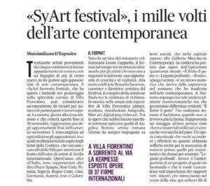 Il Syart Sorrento Festival ,evento internazionale dedicato all’ ‘arte contemporanea ,dall’8 Ottobre al 30 Novembre è ospitato a Villa fiorentino ,sede della Fondazione Sorrento.